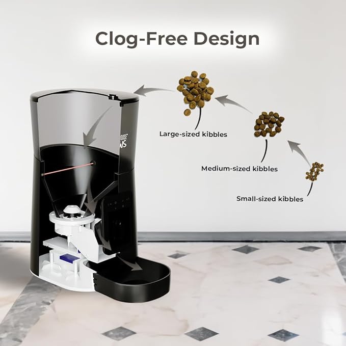 - Reliable Power & Anti-Jam Technology: Dual power supply (wall plug + battery backup) ensures your pet is always fed, even during power outages. Advanced anti-jam design keeps meals dispensing smoothly without interruptions.