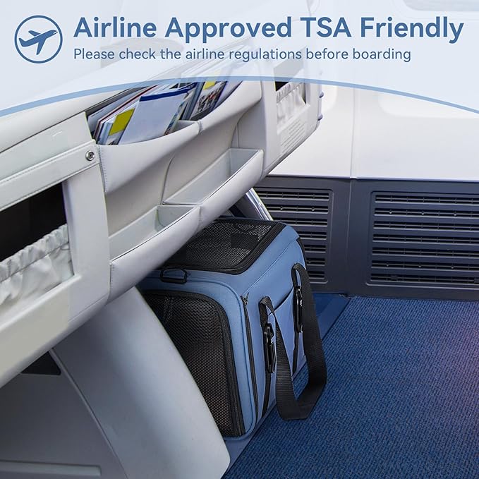 PETSFIT Soft-Sided Cat Carriers & Car Seats with Patent Safe Buckles, Clip-On Harness,18"x11"x11" Airline Approved Pet Carrier - 9 lbs Capacity (Blue)