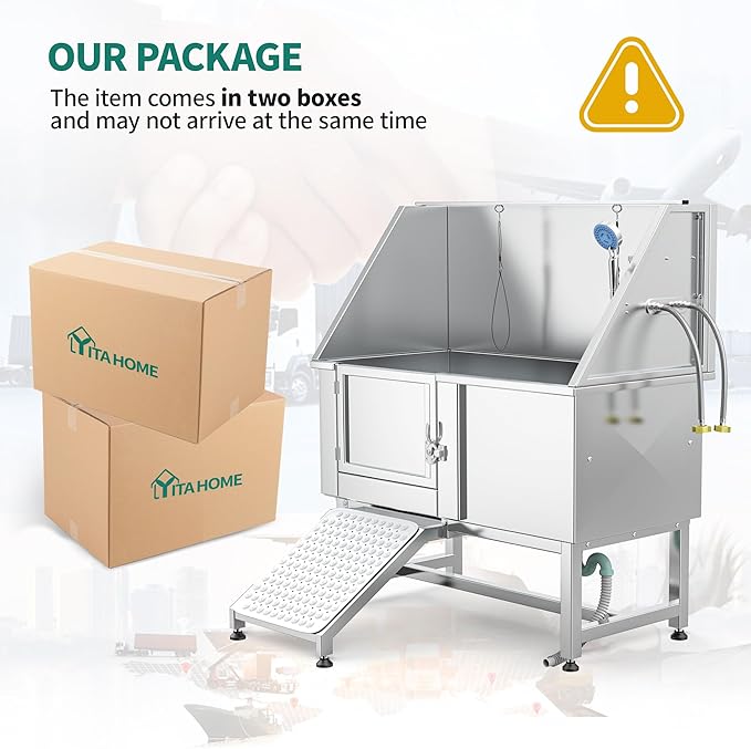 - Versatile Application: The large pet tub will be shipped in two packages; You'll be pleasantly surprised by the practicality of this pet wash station; Ideal for both indoors and outdoors to offer convenience and performance for both personal and commercial pet grooming