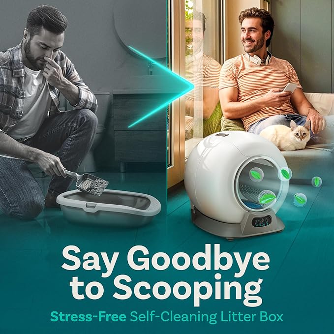 - 【Self Cleaning Litter Box】 Say goodbye to daily scooping. PurrTek auto litter box sifts into a sealed bag after every visit. Just tie and toss for a box that stays clean, fresh, and ready—24/7 convenience for you and comfort for your cat