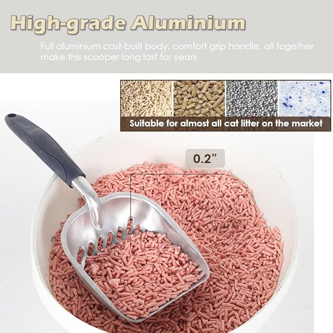- FAST SIFTING & CLEAN FLOOR - The optimal spacing of the scooper ensures a minimal shaking that allows more usable cat litter to pass through. The scoop holder keeps your floor tidy from unwanted messes and dust dropping from litter scooper