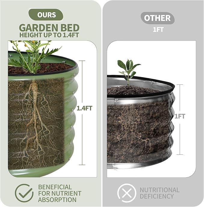 - 【Upgrade Quality & Structure 】The raised garden bed is made of thick galvanized metal with a surface spray coating, which is rust proof and anti-corrosion. Can be used for a long time. The oval design ensures uniform surface force and prevents deformation. More durable than other raised planter box, becoming a good helper for your garden