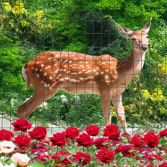 Green PVC Coated Welded Wire Fence 36 Inch x 50 Foot, 2 Inch x 3 Inch 16GA, Garden Border Fencing Roll Vinyl Coating Metal Wire Mesh for Yard Vegetable Plant Protection Poultry Netting