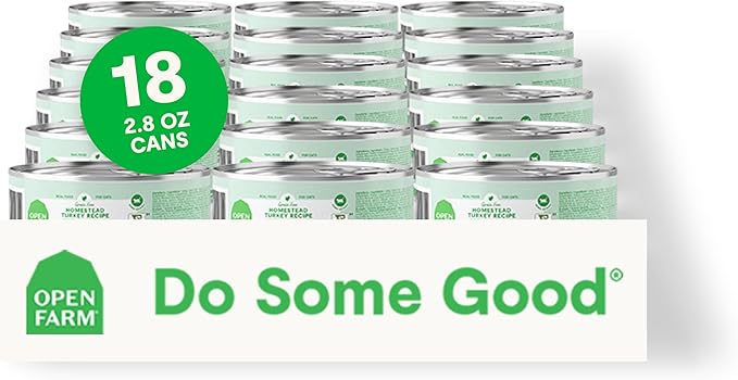 Open Farm Canned Cat Food, Paté for Complete & Balanced Nutrition, Grain-Free and Legume-Free Wet Cat Food, Homestead Turkey Recipe, 2.8oz Cans (Case of 18)