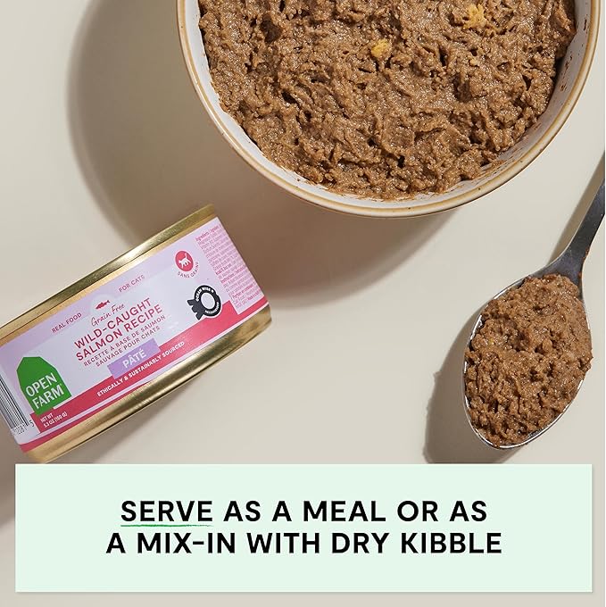Open Farm Canned Cat Food, Paté for Complete & Balanced Nutrition, Grain-Free and Legume-Free Wet Cat Food, Salmon Recipe, 5.3oz Cans (Case of 12)