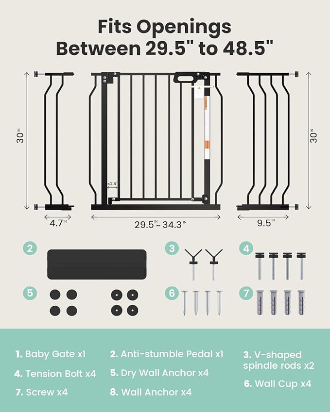- 【Fits Various Width Openings】Our adjustable baby gate is the ideal home safety solution for your little one. Tailored for doorways and stairways, it accommodates openings from 29.5 to 49.4 inches in width. Trust GROWNSY to offer both safety and convenience for your home.
