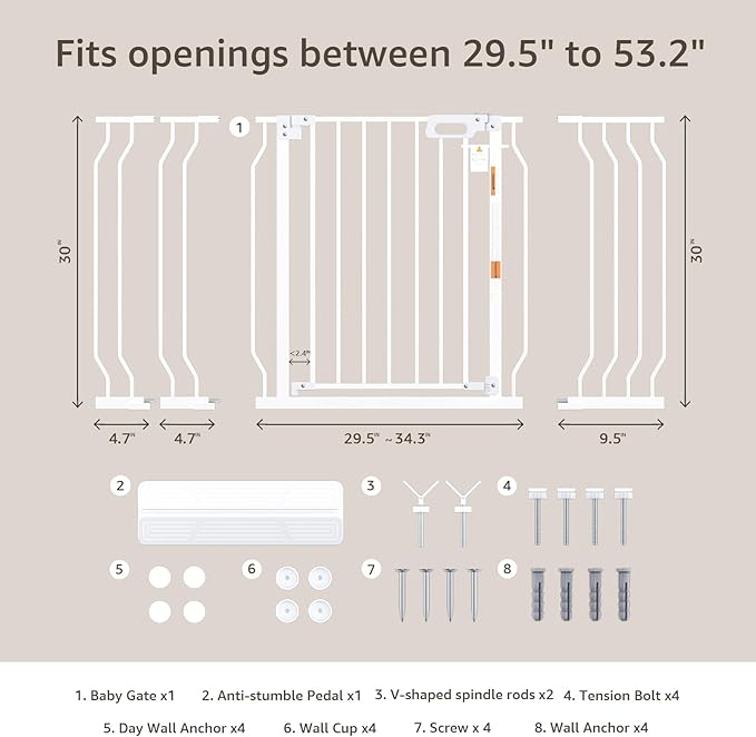 - 【Fits Various Width Openings】Our adjustable baby gate is the ideal home safety solution for your little one. Tailored for doorways and stairways, it accommodates openings from 29.5 to 53 inches in width. Trust GROWNSY to offer both safety and convenience for your home.