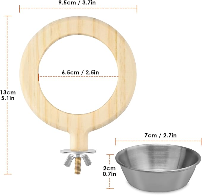 - EASY TO USE: With metal gaskets and nut, the bowl holder can be installed in all pet cage. Sturdy and stable for small birds to stand on the rim while enjoying food dish