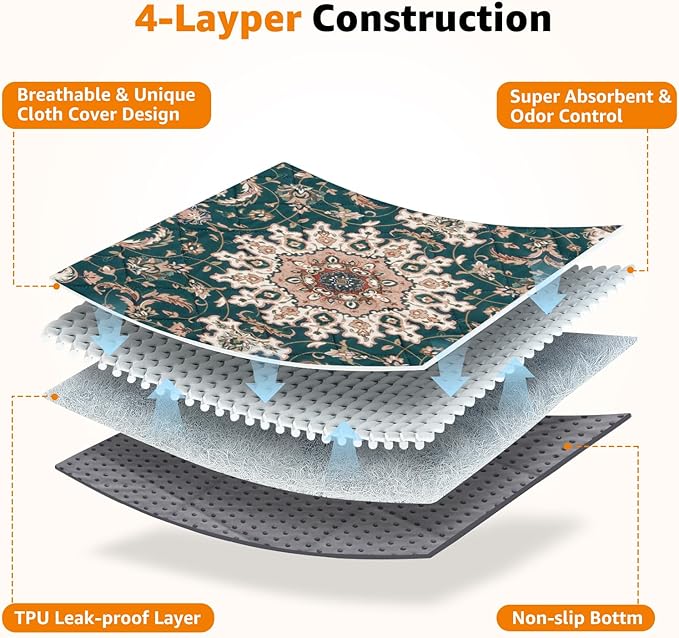 - STYLISH DOG PADS: Our Bohemian style reusable puppy pads not only ensure reliable floor protection, but they also add a touch of style to your home. They seamlessly blend with your interior decor, providing a comfy, safe spot for your furry friend’s activities or relaxation