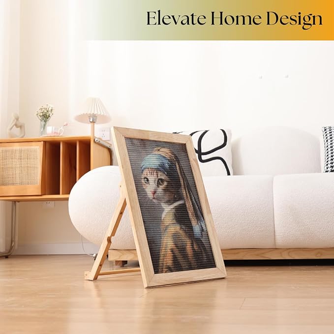 Sisal Cat Scratcher Post Mat (Use on Wall, Couch and Carpet), Shedding-Resistant Scratching Surface - 21.7x13 with Hoop and Loop Adhesives, Pads and Twist Pins (Cat with A Pearl Earring)