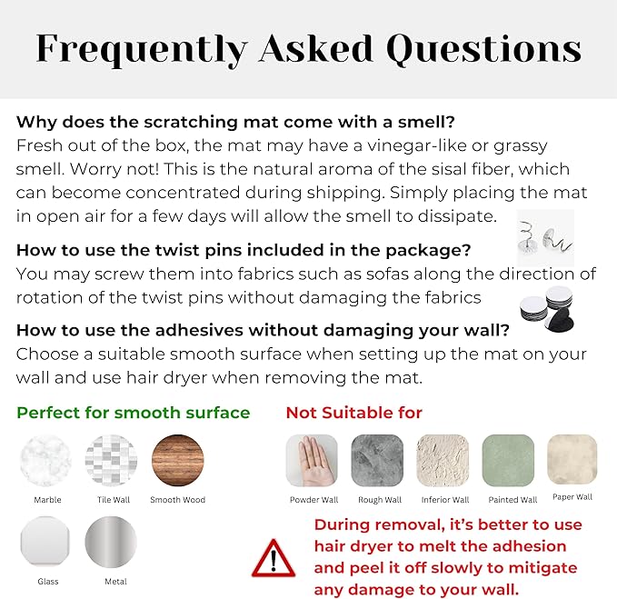 - Eco-friendly & Safe for Cats: Made from 100% natural sisal fibers and print ink free from harsh chemicals and toxins, our cat scratcher mat is eco-friendly and safe for both your cat and the environment.