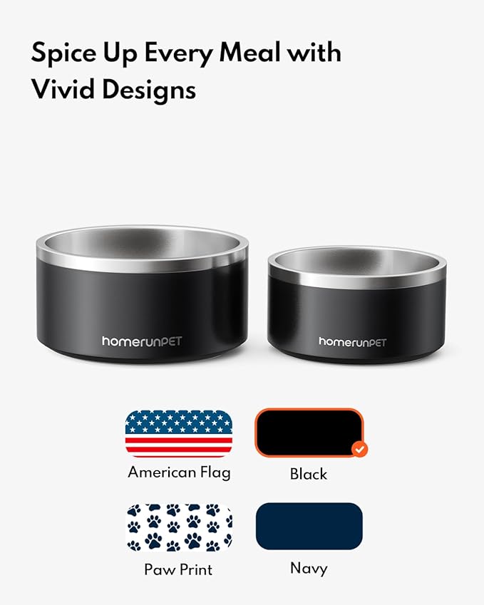 Homerunpet Double Wall Stainless Steel Dog Bowls, Non-Slip Base, Dishwasher Safe, Durable Pet Food & Water Bowl for Dogs & Cats(32oz, Black)
