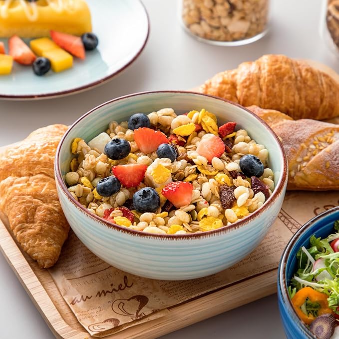 - 【Unique Spiral Design】The Bonita blue plate and bowl set features a captivating spiral pattern, adding an artistic touch to your table. This dishes set for 4 stands out with its eye-catching design and vibrant colors.