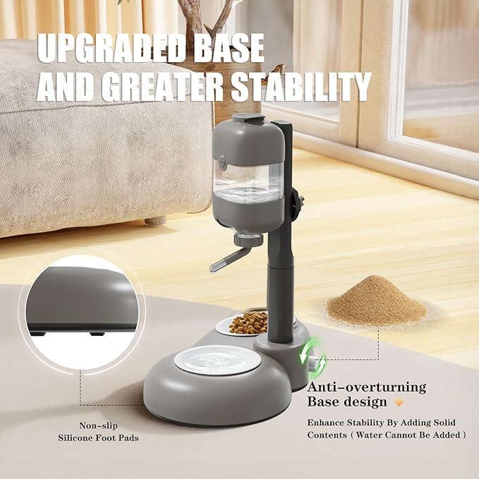 - 【Anti-overturning Base】In order to solve the pain point that the vertical water dispenser is easy to be overturned by pets,MITOCAPY conducted a series of experiments and finally designed this anti-overturning pet water dispenser.With these non-slip silicone foot pads on the bottom of the base,MITOCAPY dog water bottle dispenser has a greater stability than normal vertical water dispenser.Even you could also enhance much more stability by adding solid contents into the base,such as sand, pebbles and so on.