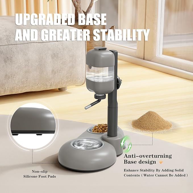 - 【Anti-overturning Base】In order to solve the pain point that the vertical water dispenser is easy to be overturned by pets,MITOCAPY conducted a series of experiments and finally designed this anti-overturning pet water dispenser.With these non-slip silicone foot pads on the bottom of the base,MITOCAPY dog water bottle dispenser has a greater stability than normal vertical water dispenser.Even you could also enhance much more stability by adding solid contents into the base,such as sand, pebbles and so on.