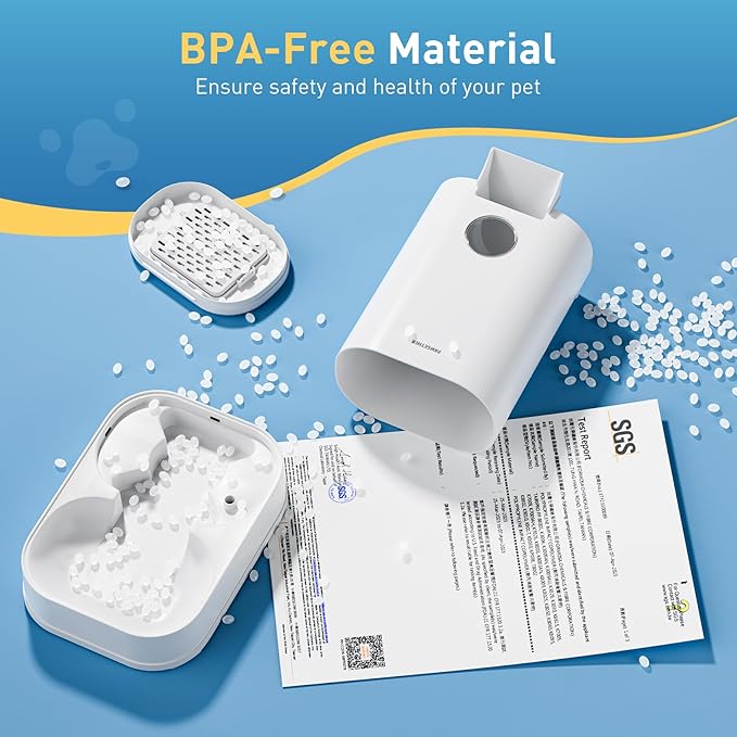 - ๐๐๐๐ ๐๐๐ญ๐๐ซ๐ข๐๐ฅ - This automatic food dispenser designed with pet-friendliness in mind, it made of Food-Grade PP Material that is reducing cat black chin and ensuring safety and health of your pet