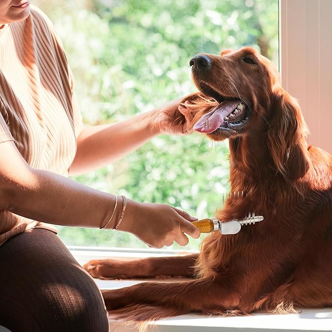 - Ergonomic handle with comfortable thumb rest: Enjoy better control and less hand fatigue during grooming sessions. The sturdy wooden handle features an ergonomic shape and a dedicated thumb rest, allowing for a secure grip and optimal leverage when working through dense fur or tough mats.