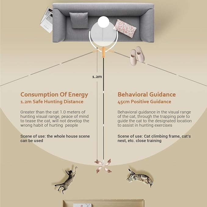 - Cat Fishing Pole Toys with Innovative 3-Section Design: The strength cat fishing pole extends to an impressive 43in, giving the kitty ample space to run and jump with glee. After playtime, the toys conveniently retract to 16in for easy storage.