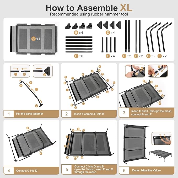 - [Easy Installation and Disassembly] Setting up the raised dog bed is a breeze. With its detachable design, you can quickly assemble or disassemble the bed with the help of tutorial videos and instructions.