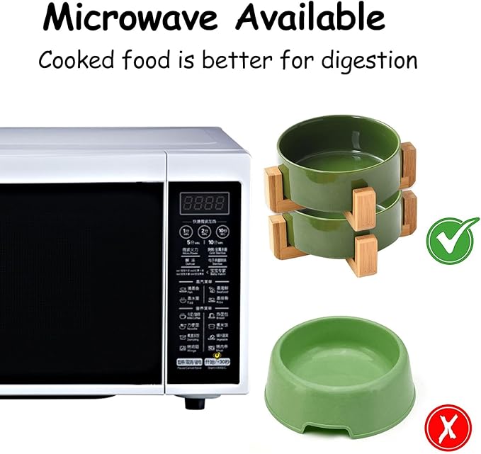 - DISHWASHER MICROWAVE SAFE - Ceramic pet bowls is made of Porcelain Ceramic with wood frame to keep from sliding on the floor. Ceramic cat dog bowls are high temperature ceramic, non-toxic durable. and the cat dog food water bowls conveniently dishwasherable so it can be easily cleaned. No Fuss.