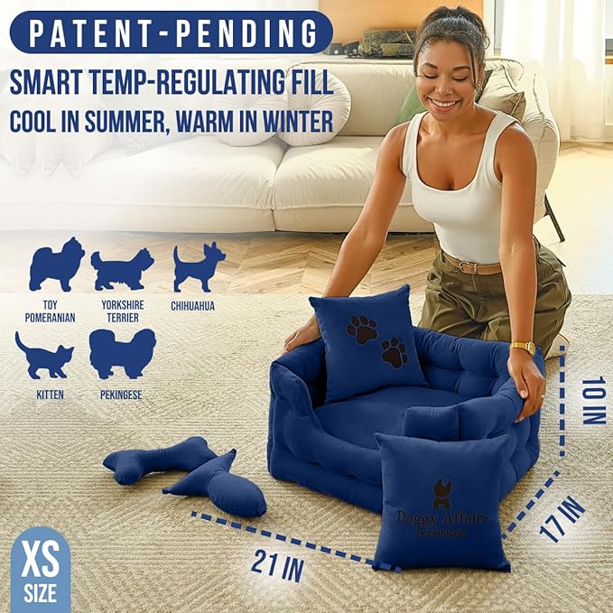 Luxury Dog Bed Chesterfield – Handcrafted Velvet Throne for Dogs | Joint Support, Calming & Temp-Regulating Comfort | Durable 5+ Years, Anti-Claw, Washable 100+ Times – XS, Blue