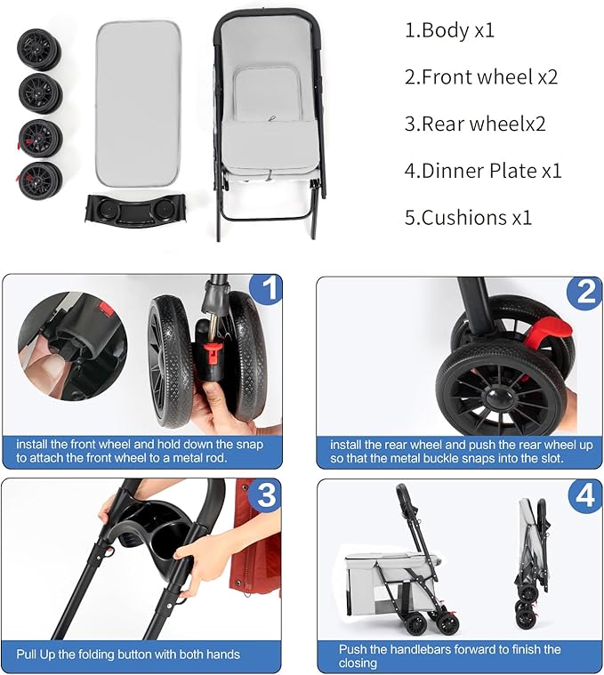 - Easy to Fold for Storage:The pet stroller can be folded by pulling the loop buckles on both sides. Easy to carry and store. The storage compartment can also carry pet drinking water and food.