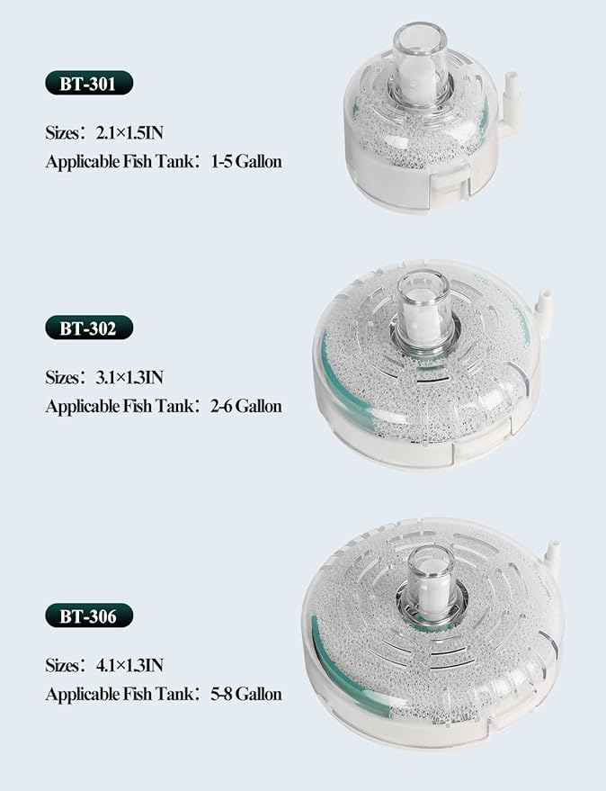 - Compact Design: Round compact design, small size, saving space in the fish tank, compatible with air pump wattage >1W. (Air pump and air tube are not included in the package). Please prepare an air pump suitable for this filter according to your fish tank size