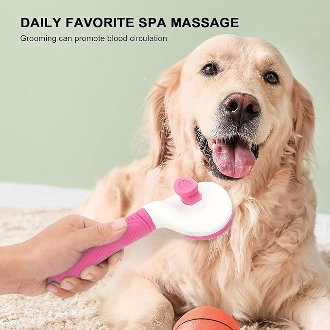 Self Cleaning Slicker Brush for Pet Grooming - Removes Loose Undercoat and Sheds, Suitable for Long and Short Hair Cats and Dogs, with Massaging Bristles (Pink)
