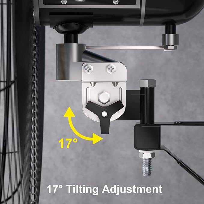- Adjustable Tilting and Oscillation: Cool every corner with the wall mount fan's 80° oscillating airflow that moves back and forth. And with the option to 17° tilt or within it, achieve the better air placement for your comfort. So Just enjoy a cooling summer