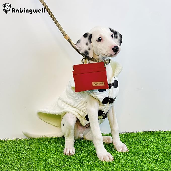 - Durable Material: Raisingwell's dog treat training pouch is crafted from durable, washable, non-toxic vegan fabric, made of pure cotton. In particular, the waterproof lining addresses the issue of difficult cleaning inside the training pouch.