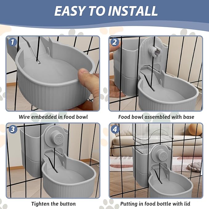 - 🐰 [Quality Materials]: Our rabbit food dispenser is made of durable food grade PP plastic, safe and odourless. The capacity of the feeder is 40oz/1200ml, which can meet your pet's food needs for 3-5 days