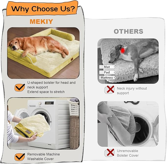 Large Dog Bed Orthopedic Washable - Couch Sofa - XL Large Big Dogs - Beds Bolster Pet - Memory Foam - Waterproof with Removable Cover - Ginger Yellow Dog Bed