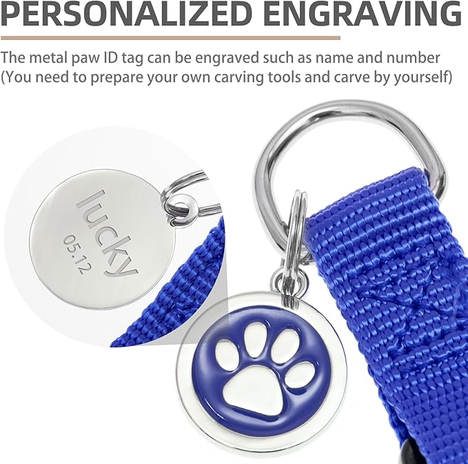 - [Cute ID Tag for DIY] - Each harness is equipped with a metal ID tag, and the front is a cute paw pattern, while on the back, you can engrave whatever you want, such as the dog's name and so on. It does not corrode as easily as wooden labels and is durable. You can also remove it when washing the harness.