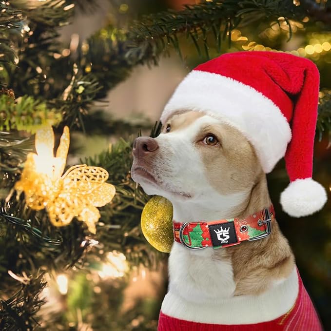 TSPRO Tactical Dog Collar 1.5 Inch Wide Thick Dog Collars with Heavy Duty Metal Buckle, Durable, Strong, Adjustable for Medium to Large Dogs (Christmas Red M)