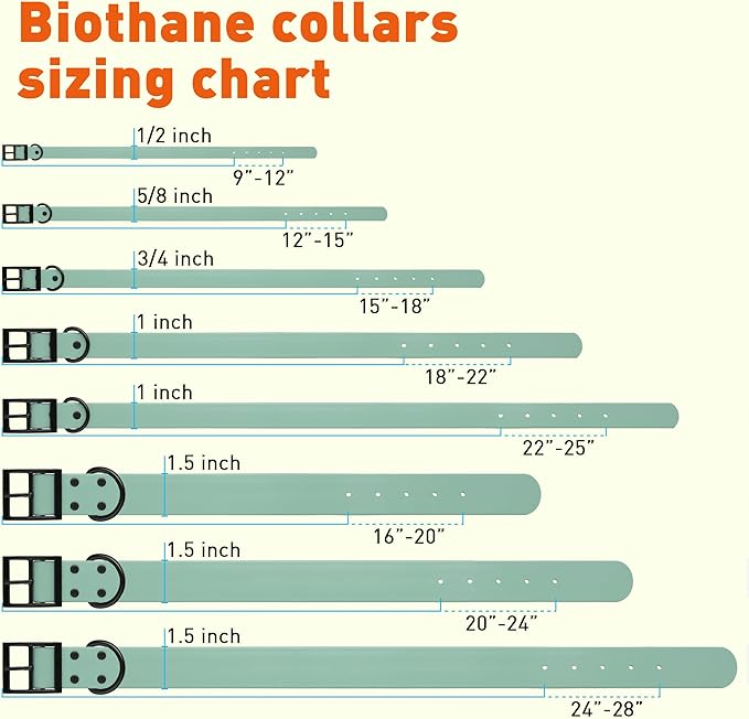 • Accommodates all breeds and dog sizes, with 8 lengths and 5 widths to select from. Widths from 0.5" to 1.5" and lengths from 9" up to 28" offer a collar to fit small, medium, large and giant dog breeds.