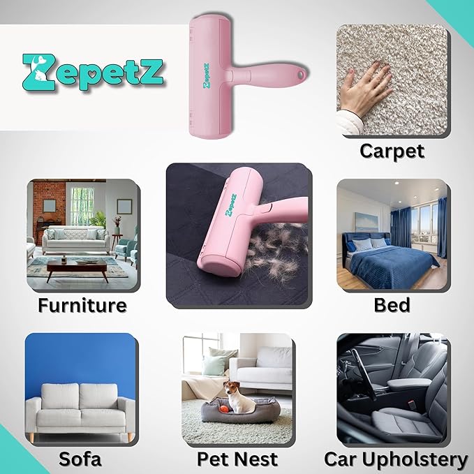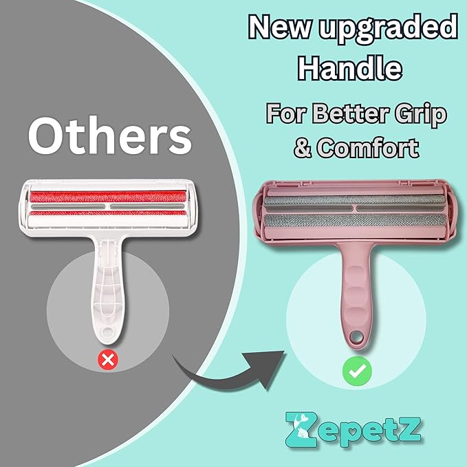 Pet Hair Removal Tool โ Reusable Lint Roller for Dogs & Cats โ Self-Cleaning Fur Remover Brush โ Ergonomic Lint Roller for Carpet, Bedding, Couch, Car Seat & More (Pink)