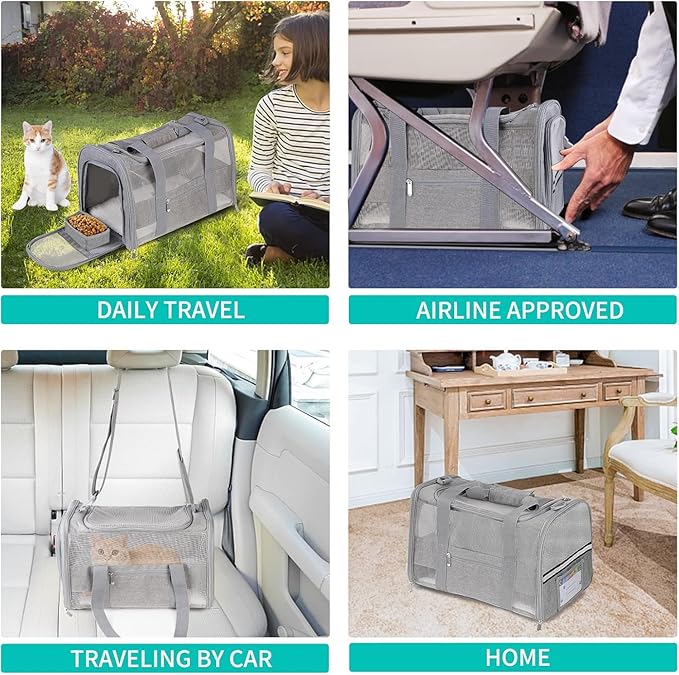 Pet Carrier Soft Side Cat Carrier Collapsible Travel Puppy Carrier Bag TSA Airline Approved Kitten Carrier Bag for 15 lbs Small Pets (Gray)