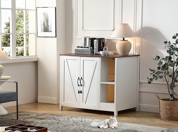 - 3)【Dog proof cat litter robot cabinet】;We exclusively design this litter robot enclosure box with a adjustable shlelf to prevent dog from entering to eat litter or hurt cat. This shelf can protect your cat, meanwhile, providing a space for you to place cat stuff.