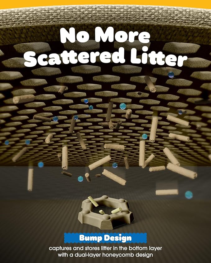 - DOUBLE-LAYER LITTER CATCHER: With a honeycomb hollow layer and leakproof bottom layer, Powools double-layer kitty litter mat can effectively trap loose litter from the box and cat paws. Moreover, the side-opening design allows you to tip the mat and pour the collected litter into the litter box, easily recycling it and reducing waste.