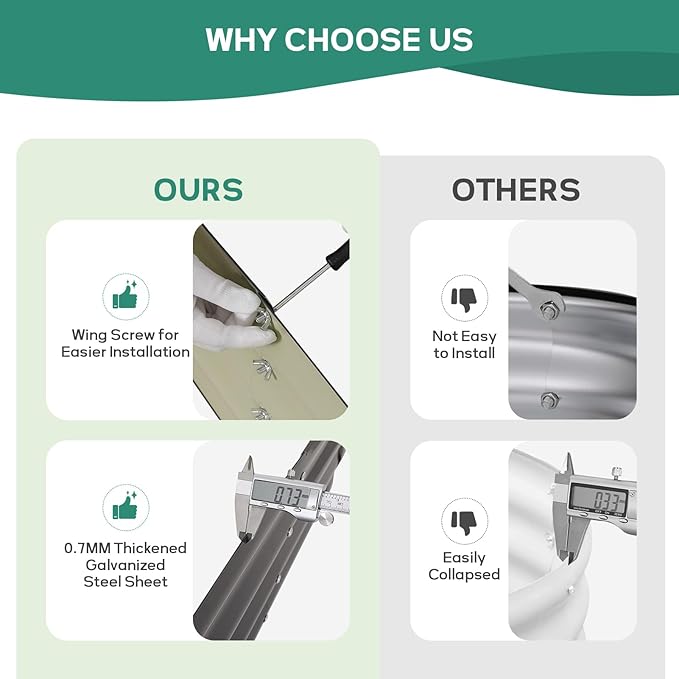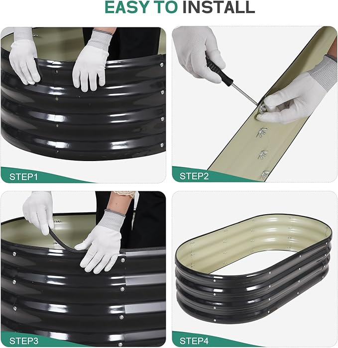 - 【 Easy Assembly 】Our metal raised garden bed is simple and easy to install. According to the detailed instructions and installation tools we provide, you can easily assemble your garden box and start planting with just a few simple steps and little time.