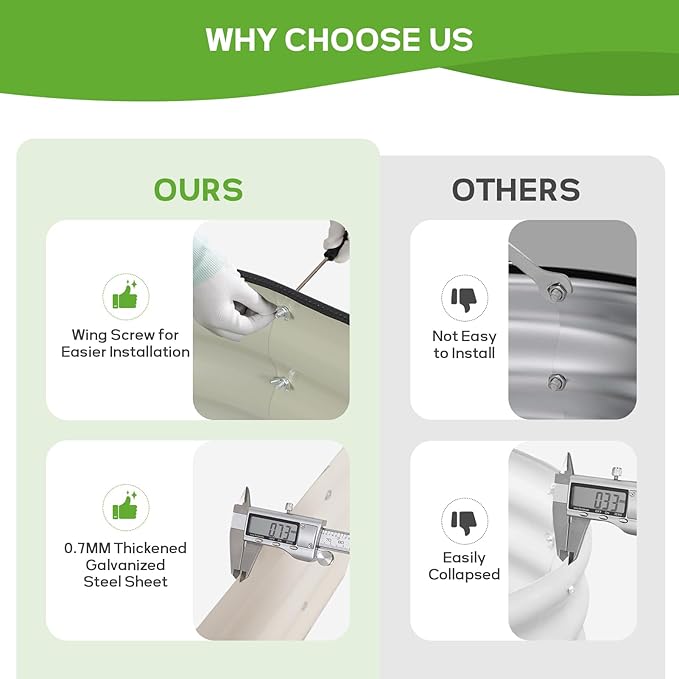 - 【 Easy Assembly 】Our metal raised garden bed is simple and easy to install. According to the detailed instructions and installation tools we provide, you can easily assemble your garden box and start planting with just a few simple steps and little time.