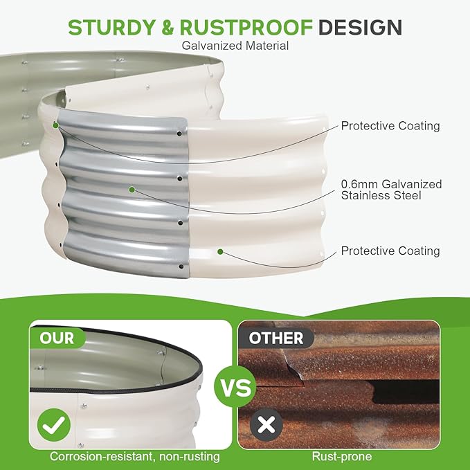 - 【 Durable and Long-lasting 】 BIRDSINYARD outdoor raised garden bed is made from 0.7mm thick galvanized steel,featuring a rust-resistant and corrosion-resistant coating.Garden planter effectively withstands humid weather and harsh conditions, ensuring it won't easily warp or rust with long-term use.