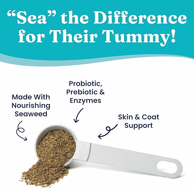 Solid Gold SeaMeal Cat Probiotic & Dog Probiotics for Digestive Health - Kelp Powder Dog & Cat Multivitamin Supplement w/Prebiotics & Digestive Enzymes for Skin, Coat, & Gut + Immune Support - 3.5oz