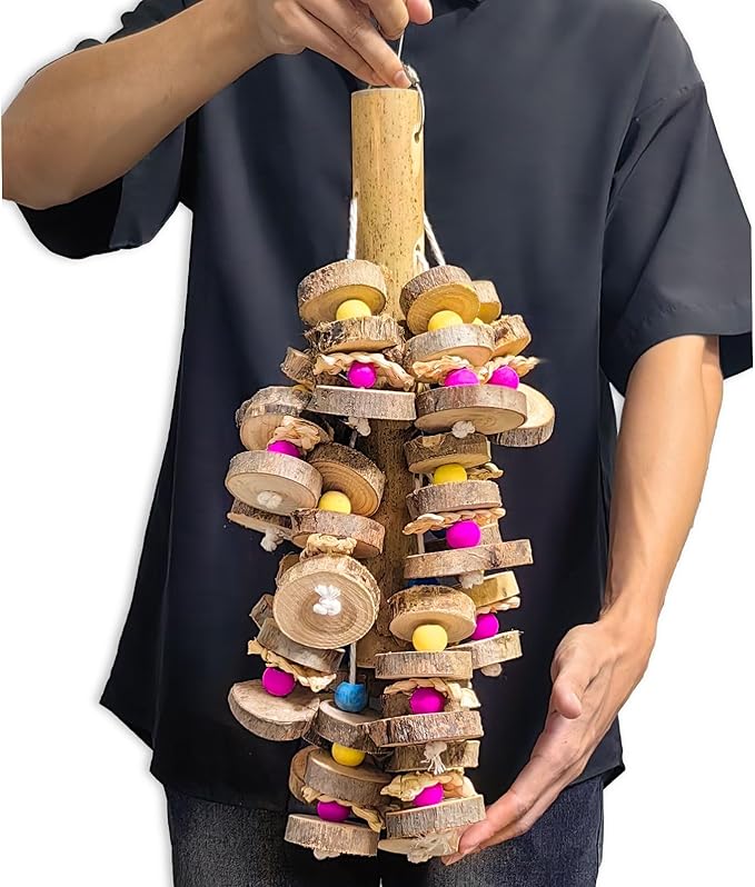 Extra Large Bird Parrot Toys- 19.7 inch Multicolored Natural Wooden Block Parrot Chewing Toy Suggested for Macaws cokatoos, African Grey and a Variety of Amazon Parrots. (Large Size)