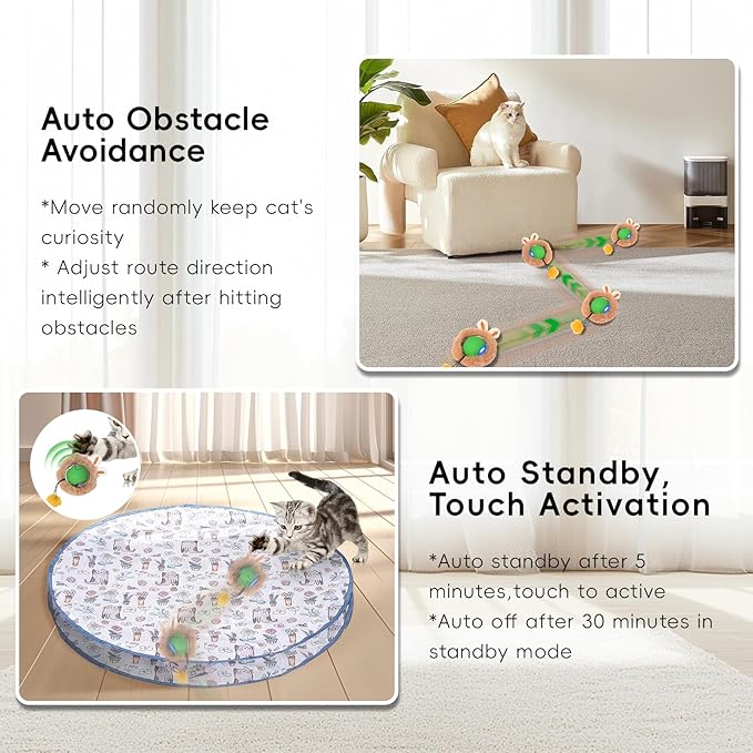 - USB Rechargeable for Cycle: This cat toy can be easily recharged by USB with red light flashing in low battery mode, comes with a Type-C charging cable for quick and convenient charging that ensures your pet cycles through playtime