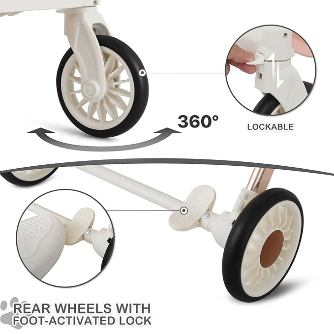 - Superior Wheel Design for Smooth Rides: Navigate with ease thanks to our pet stroller's robust wheel system; It boasts a 5.5-inch front wheel diameter for agile maneuvering and a 6-inch rear wheel diameter for stability, complete with reliable rear wheel brakes for safe strolling