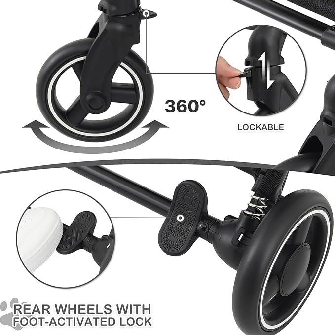 - Superior Wheel Design for Smooth Rides: Navigate with ease thanks to our pet stroller's robust wheel system; It boasts a 5-inch front wheel diameter for agile maneuvering and a 6-inch rear wheel diameter for stability, complete with reliable rear wheel brakes for safe strolling