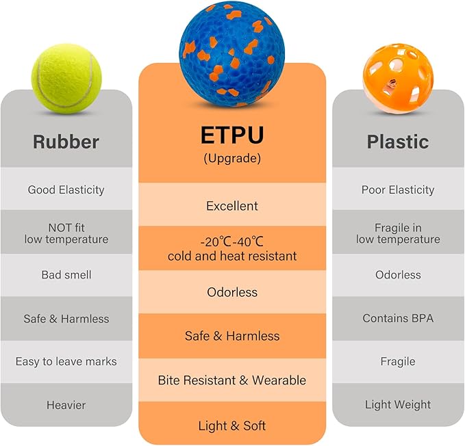 - 【Ultra-Durable for Aggressive Chewers】Made from premium food-grade ETPU, this indestructible dog ball withstands even the most aggressive chewers without cracking or losing shape. Its rugged, anti-burst construction ensures long-lasting playtime, giving your dog endless fun while saving you money on replacements
