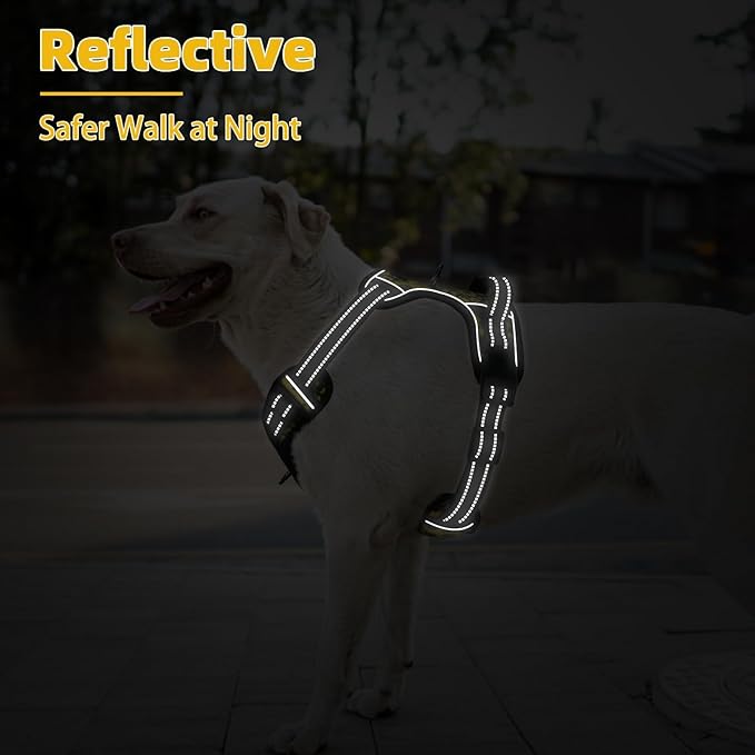 - REFLECTIVE SAFETY STRIP: This dog harness features reinforced stitching for added toughness. Multiple reflective strips improve visibility. Suitable for a variety of occasions and can be used for a variety of activities such as daily walks, running, hiking, and training. Keeping your dog safe on night walks