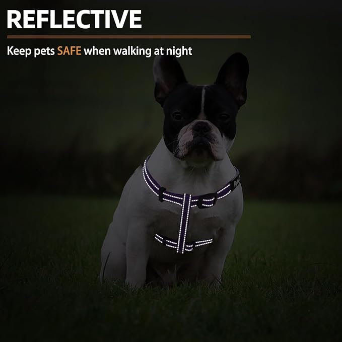 PUPTECK No Pull Dog Harness Soft Adjustable Basic Nylon Step in Puppy Vest Outdoor Walking with ID Tag, Reflecive Purple, S